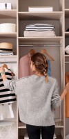 Грамотно организовать наполнение шкафа помогают не только полки, но и корзины, штанги, держатели, выдвижные ящики. Нижние широкие полки предназначены для постельного белья и принадлежностей, верхние – для сезонных вещей, а средние, самые доступные – для повседневного гардероба. Для удлиненной верхней одежды оборудуется специальная секция.